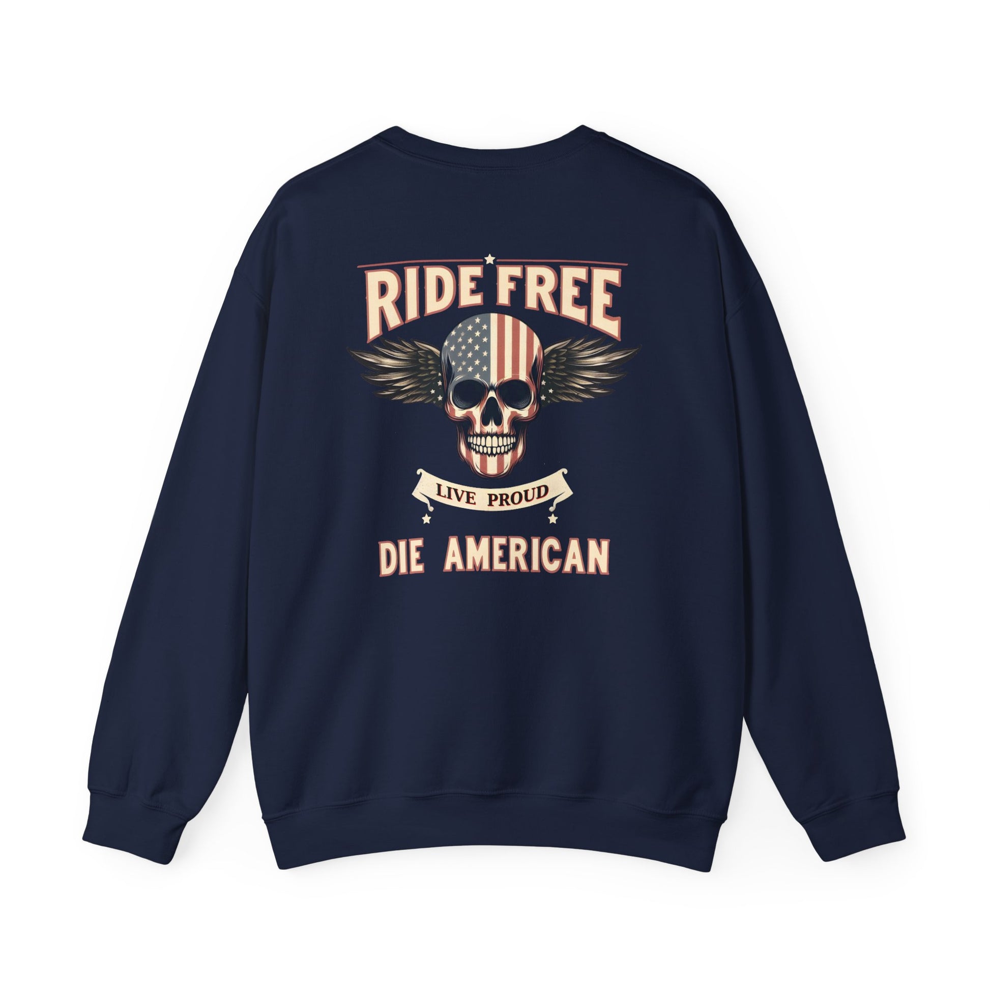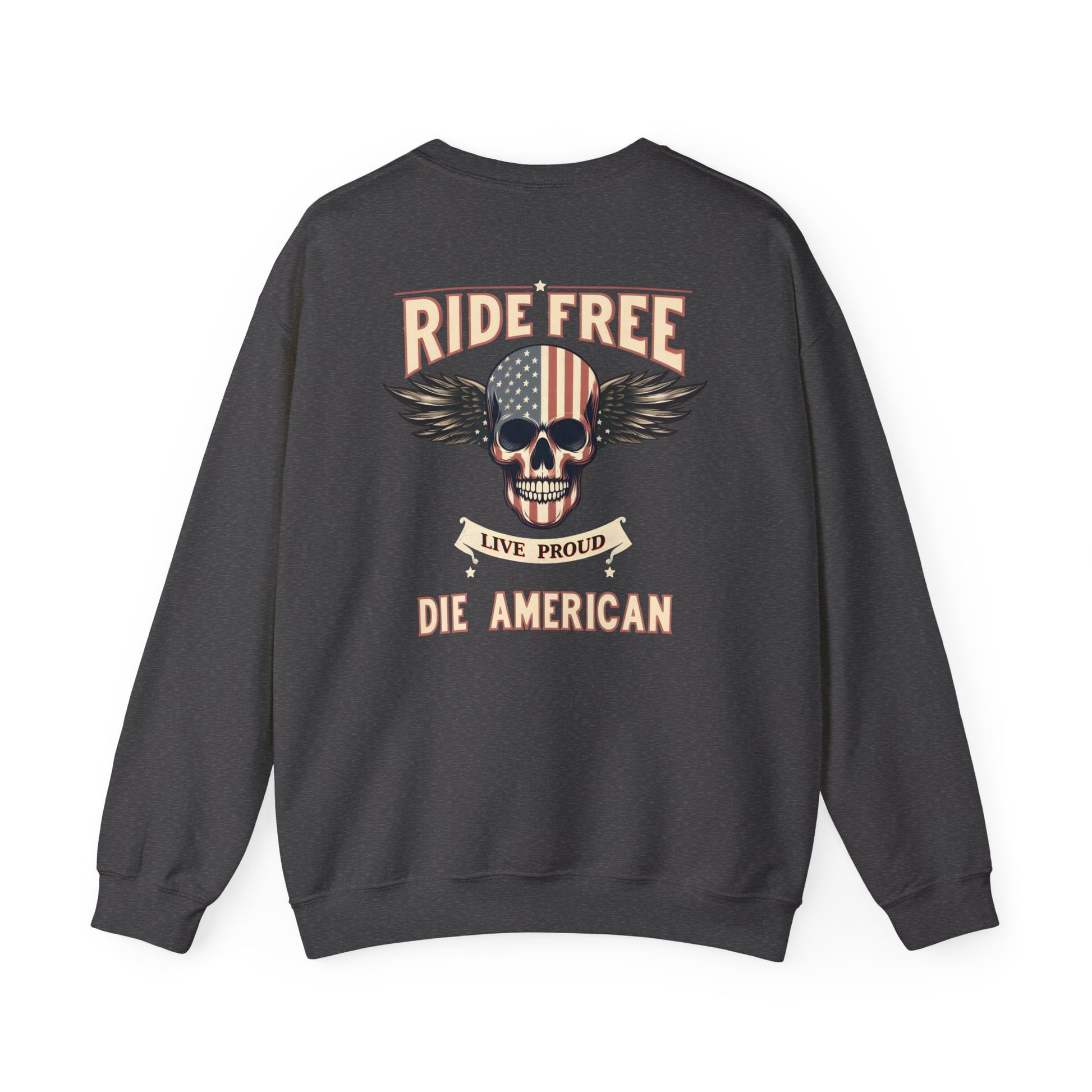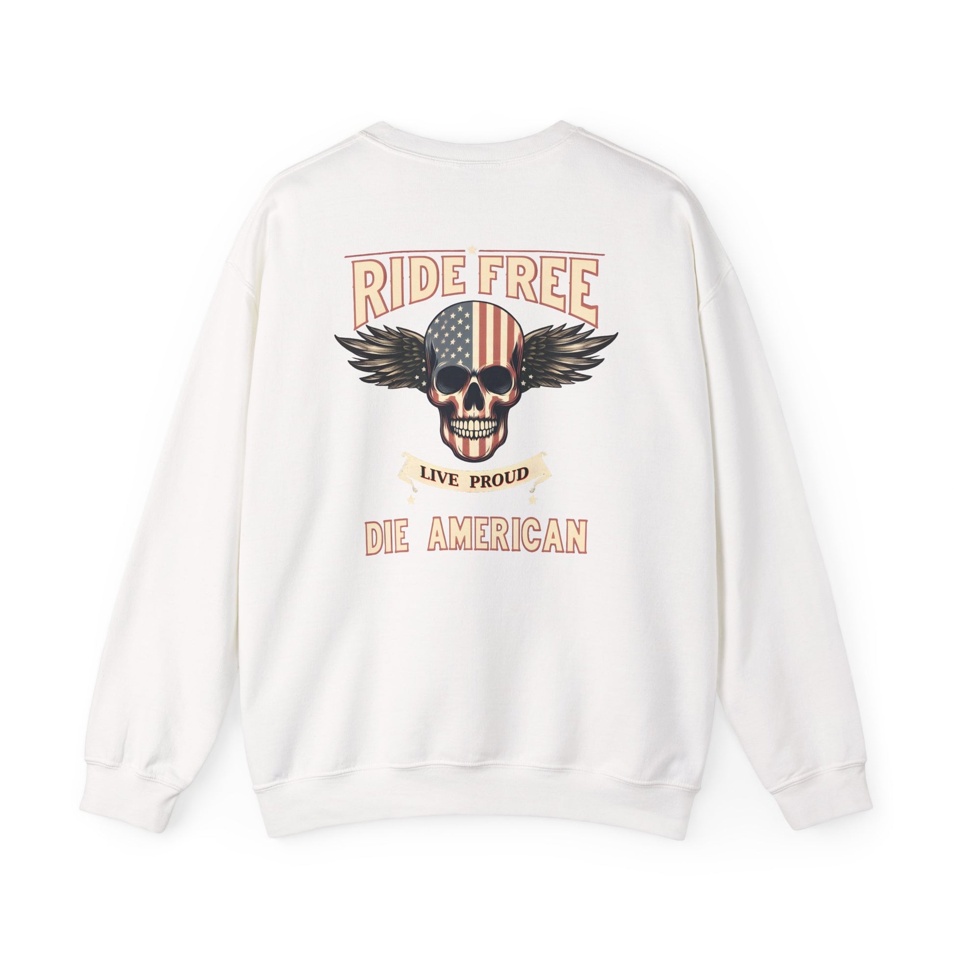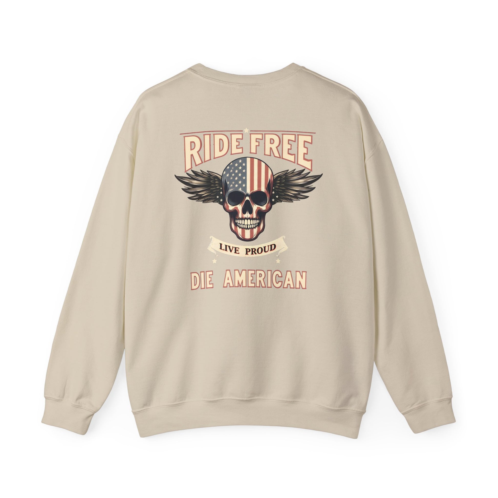 American Biker Sweatshirt — "Ride Free,Live Proud,Die American" Crewneck