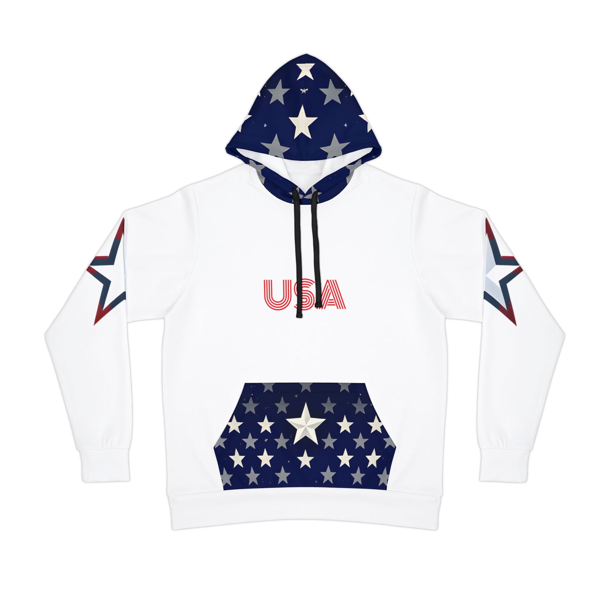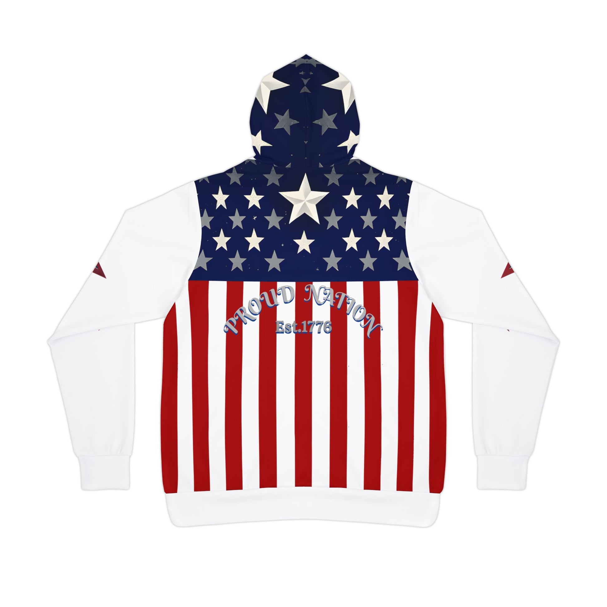 Patriotic Hoodie – USA Proud Nation Design, American Flag & Star Sleeves.